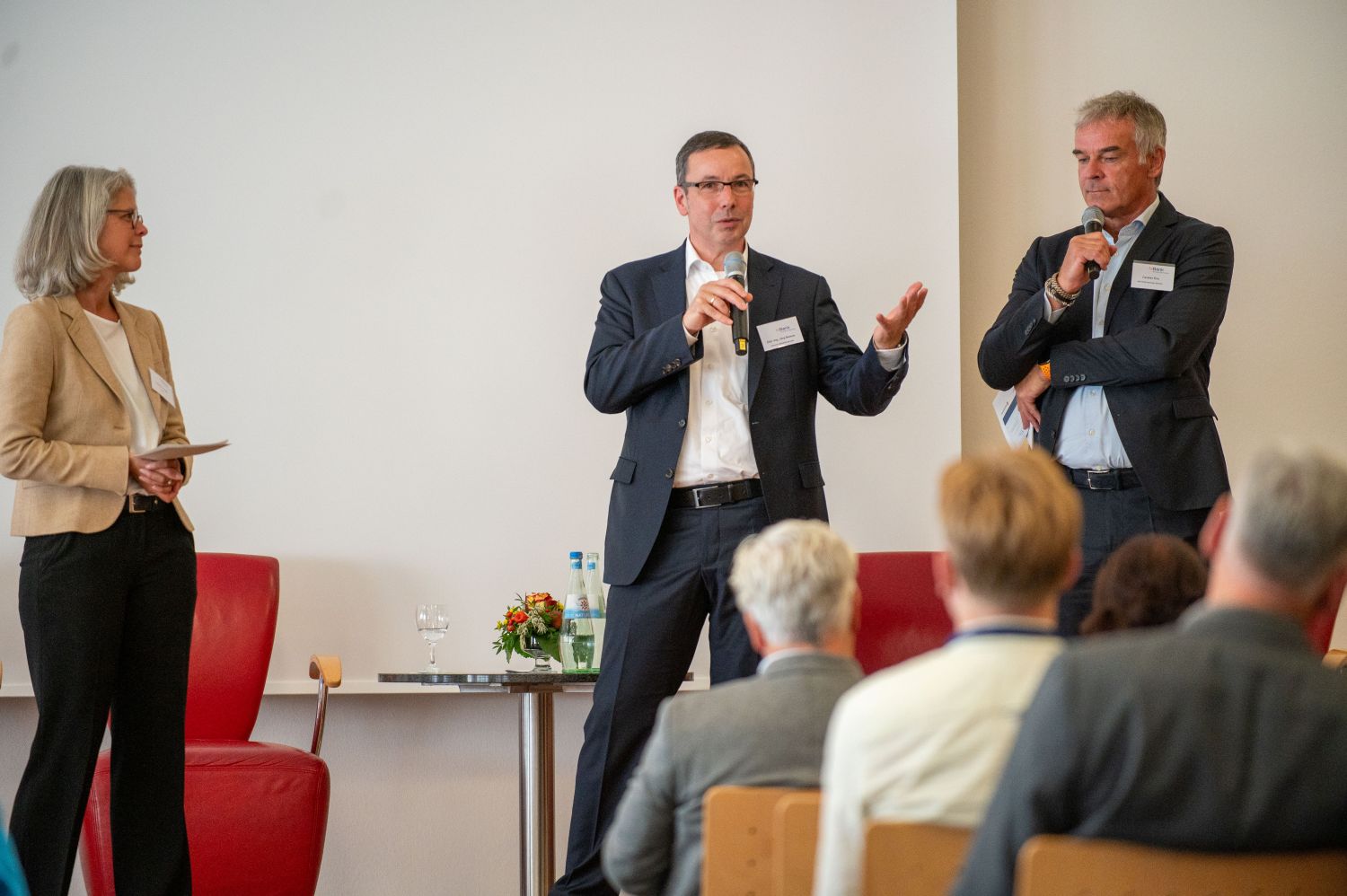 Daneben wurden Ideen für gelungene Nachverdichtung im innerstädtischen Bereich vorgestellt, wie zum Beispiel das Projekt „Tarzan und Jane“ der Gewoba in der Bremer Gartenstadt Vahr, das mit dem Deutschen Städtebaupreis ausgezeichnet worden ist. Die beiden durch Laubengänge miteinander verbundenen Gebäude zeigen, wie Siedlungen aus den fünfziger und sechziger Jahren mit kostengünstigem aber qualitativ hochwertigem Neubau aufgelockert werden können. 41 preisgebundene und 21 preisfreie Wohnungen sind bis Herbst 2023 hier entstanden. Eine Photovoltaikanlage auf dem Dach liefert den Strom für das Gebäude.